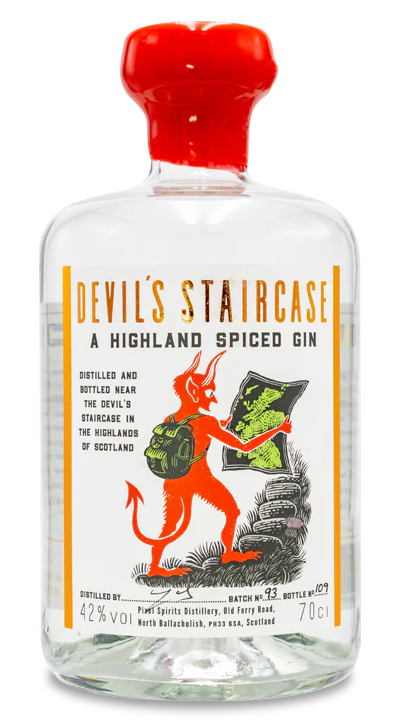 Devil's Staircase Gin ist nach einer legendären Wanderung in den West Highlands von Schottland benannt. Dieser steile Bergaufstieg, der jetzt Teil des West Highland Way ist, hat mehr als nur einen gerechten Anteil an Opfern gefordert und daher auch seinen Namen. Am liebsten in Gesellschaft von Freunden nach einem wilden Mungo-Trek. Devil's Staircase wird den Gaumen wärmen und den Körper entspannen. Am besten serviert mit einem Band Orangenschale, ein paar Kardamom Schoten und einem Premium-Tonic oder Ginger Ale. Destilliert in der Pixel Spirits Distillery, West Highlands von Schottland. Label Design und Artwork ist von dem legendären schottischen Illustrator Iain McIntosh. Dieser handgefertigte Gin ist eine wirklich kleine Charge (weniger als 80 Flaschen pro Charge), wird von Hand abgefüllt und etikettiert und jede Flasche wird einzeln von Craig, dem Master Distiller, nummeriert und signiert.